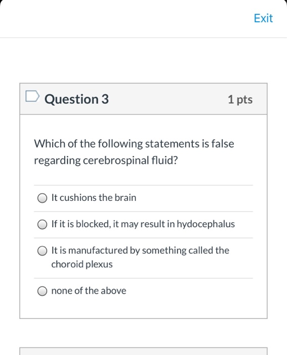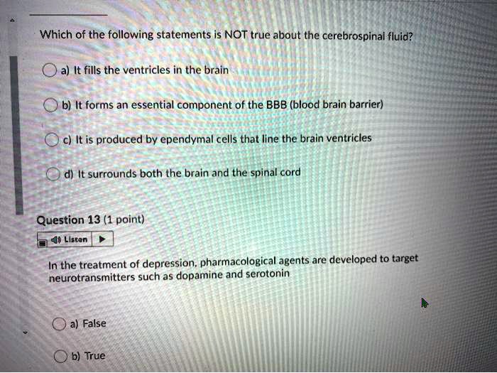 Solved Which Of The Following Statements Is Not True About The Cerebrospinal Fluid A It Fills The Ventricles In The Brain B It Forms An Essential Component Of The Bbb Blood Brain Barrier