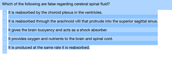Which of the Following Statements About Cerebrospinal Fluid Is False